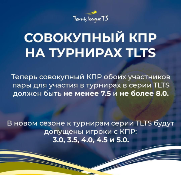 Теперь совокупный КПР обоих участников пары для участия в турнирах серии TLTS должен быть не менее 7.5 и не более 8.0.
