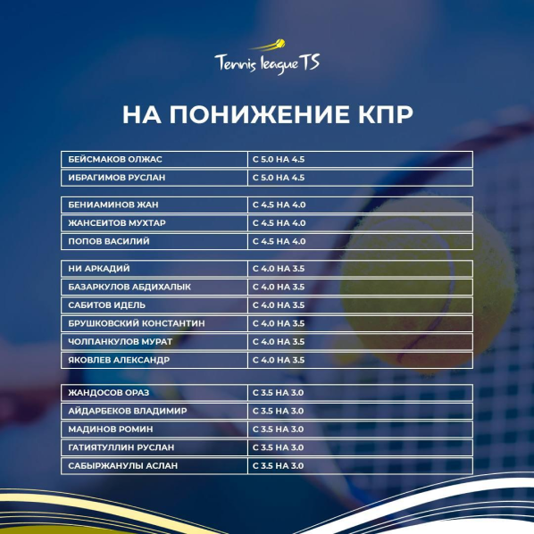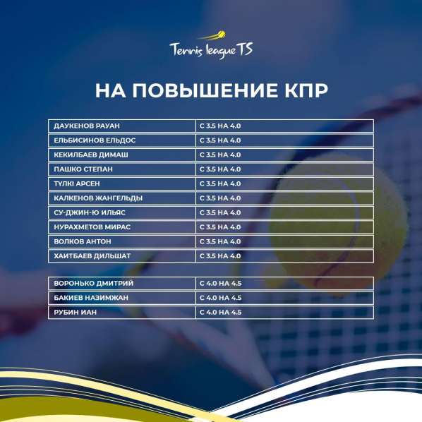 Новость для членов Tennis League TS
